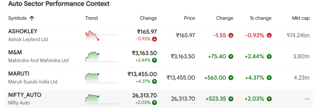 इस तेजी का सबसे बड़ा ट्रिगर रहा Maruti Suzuki India, जिसके शेयर करीब 5% उछले। दिलचस्प बात ये रही कि कंपनी का तिमाही मुनाफा 6.5% घटा, फिर भी निवेशकों ने इसे नजरअंदाज किया। वजह साफ है—कंपनी ने डीलर इन्वेंट्री को काफी कम किया है और आगे के लिए 10% वॉल्यूम ग्रोथ का बड़ा टारगेट सेट किया है, जो इंडस्ट्री एवरेज से काफी ज्यादा है।