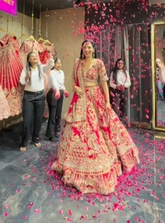 लाल लहंगे में ‘दुल्हन’ सा निखार
