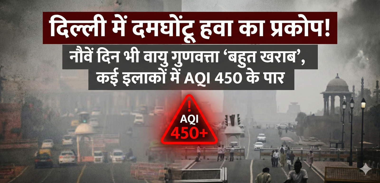 राजधानी दिल्ली में प्रदूषण का संकट लगातार गहराता जा रहा है. शनिवार को लगातार नौवें दिन हवा ‘‘बहुत खराब’’ श्रेणी में दर्ज की गई. केंद्रीय प्रदूषण नियंत्रण बोर्ड (CPCB) के अनुसार सुबह 9 बजे दिल्ली का समग्र एक्यूआई 360 था, जो शाम 4 बजे बढ़कर 370 हो गया. 20 से अधिक मॉनिटरिंग स्टेशनों ने ‘‘बहुत खराब’’ और 11 स्थानों ने ‘‘गंभीर’’ स्तर की वायु गुणवत्ता दर्ज की. सबसे ज्यादा प्रदूषण वजीरपुर में देखा गया, जहां AQI 448 तक पहुंच गया. आनंद विहार, विवेक विहार, रोहिणी, जहांगीरपुरी और बवाना जैसे क्षेत्रों में भी AQI 400 के पार रहा.