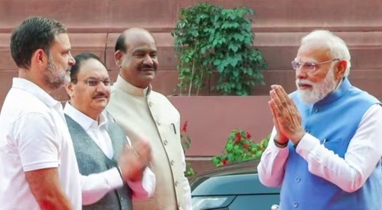 प्रधानमंत्री मोदी जैसे ही अपनी कार से उतरकर कार्यक्रम स्थल की ओर बढ़े, उन्होंने वहां मौजूद नेताओं का अभिवादन किया। इसी दौरान वह राहुल गांधी के पास रुके और दोनों नेताओं ने मुस्कुराते हुए पारंपरिक अभिवादन किया। कुछ देर तक दोनों के बीच हल्की लेकिन तल्लीन बातचीत होती रही। आसपास मौजूद नेताओं और कर्मियों की नजरें भी इस दुर्लभ पल पर टिक गईं।