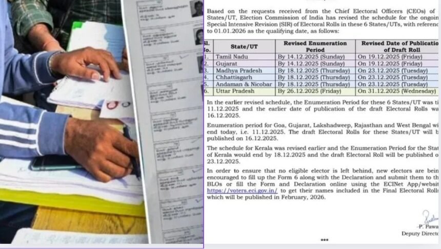 तमिलनाडु और गुजरात में फॉर्म भरने की अंतिम तारीख 14 दिसंबर रखी गई है, जबकि 19 दिसंबर को ड्राफ्ट मतदाता सूची जारी की जाएगी।