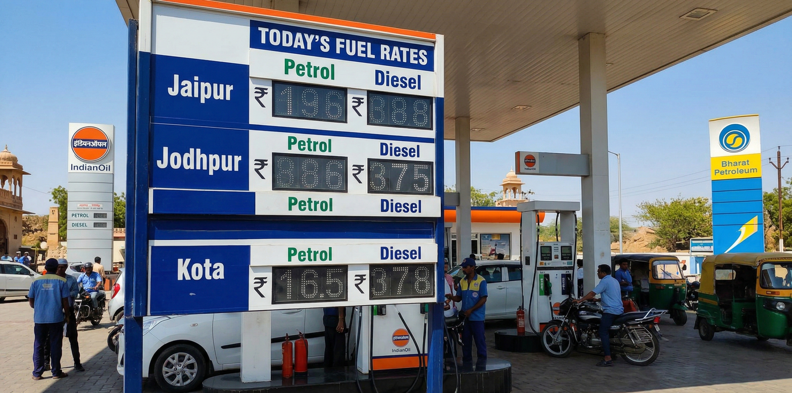 राजस्थान के दूसरे बड़े शहरों में भी कीमतें लगभग स्थिर बनी हुई हैं। जोधपुर में पेट्रोल करीब ₹104.52 से ₹104.97 और डीजल ₹89.95 से ₹90.45 के बीच दर्ज किया गया। वहीं कोटा में पेट्रोल लगभग ₹104.25 और डीजल ₹89.78 के आसपास बना हुआ है। उदयपुर में पेट्रोल करीब ₹105.50 और डीजल ₹90.43 से ₹90.97 के बीच चल रहा है।