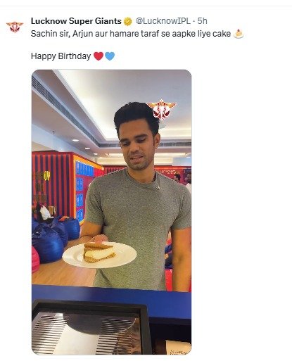 Lucknow Super Giants (LSG) ने अपने हैंडल से अर्जुन का एक छोटा सा वीडियो शेयर किया है। वीडियो में अर्जुन के हाथ में केक की प्लेट है, लेकिन वह उसे खाने के मूड में बिल्कुल नहीं दिखे। उन्होंने अपने ‘पापा’ को विश करते हुए कहा, “हैप्पी बर्थडे! मैं यह केक नहीं खा रहा क्योंकि मैंने शुगर पूरी तरह छोड़ दी है। सी यू सून!”