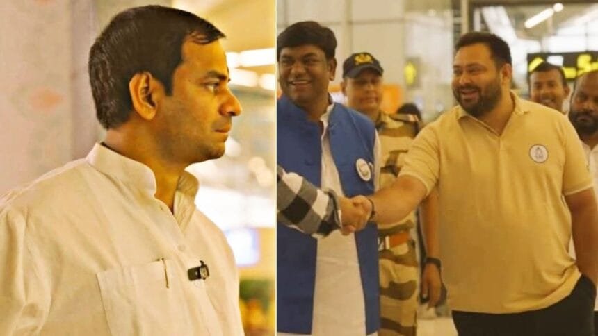दोनों भाइयों की यह मुलाकात ऐसे वक्त में हुई है जब उनके बीच मतभेद और मनमुटाव की खबरें लगातार सुर्खियों में हैं. बताया जा रहा है कि तेजप्रताप यादव यूट्यूबर समदीश भाटिया को इंटरव्यू दे रहे थे, तभी एयरपोर्ट पर तेजस्वी यादव और मुकेश सहनी पहुंच गए.
