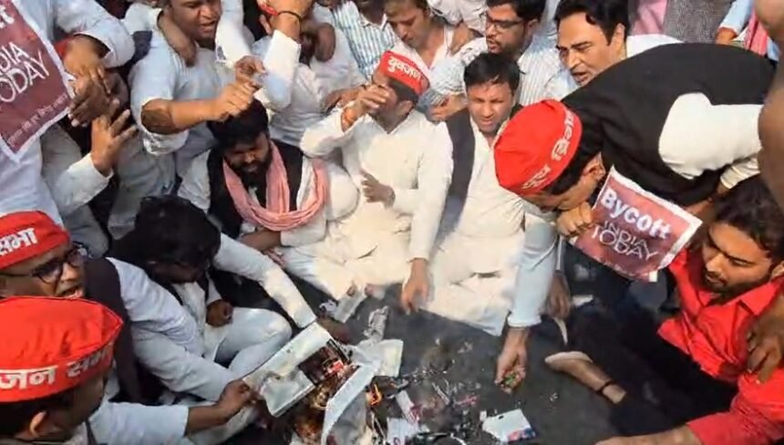 लखनऊ. उत्तर प्रदेश की राजधानी लखनऊ में समाजवादी पार्टी के यूथ ब्रिगेड ने न्यूज मैगजीन इंडिया टुडे के खिलाफ सड़कों पर जमकर विरोध प्रदर्शन किया.