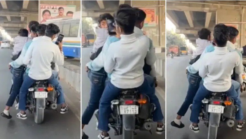 लखनऊ। नेशनल हाईवे-9 पर स्टंटबाजी और लापरवाही का एक वीडियो सोशल मीडिया पर तेजी से वायरल हो रहा है। वीडियो में पांच युवक बाइक पर सवार दिख रहे हैं और ट्रैफिक नियमों की खुलकर अवहेलना कर रहे हैं। कुछ युवक बाइक के किनारे लटके हुए हैं, जिससे बड़ी दुर्घटना होने का खतरा पैदा हो सकता था।