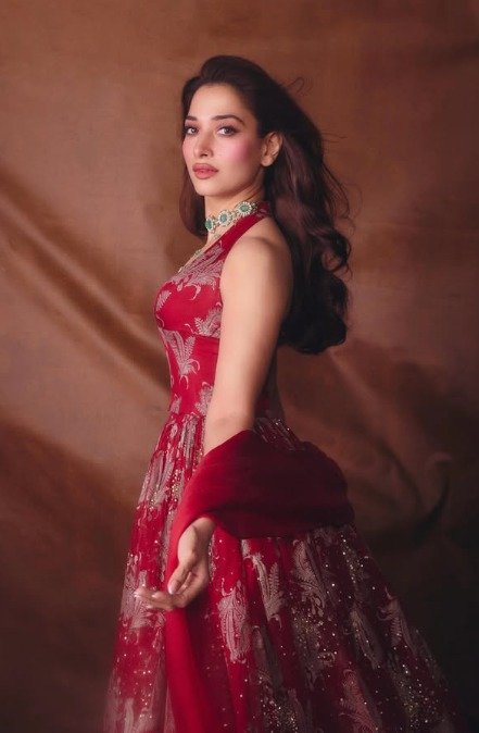 Tamannaah ने पहना है हैवी एम्ब्रॉयडरी वाला रेड फ्लोर-लेंथ गाउन